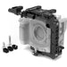 The cage includes a 15mm rod that supports a combo accessory mount that provides another anti-twist 3/8"-16 thread, M4x20 threads, a shoe mount, a Canon-style mic shock-mount pattern, and a 1/4"-20 mount for an optional AB-4 audio breakout. Additional features include an integrated HDMI cable clamp, two rod mounts for 3rd-party lens adapters such as Metabones and others, and three rubber caps.