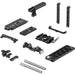 The kit includes a full camera cage, a universal Manfrotto/DJI dovetail, a 15mm LWS baseplate with rod bracket, and a 6" pair of 15mm rods for seamless integration of follow focus systems and matte boxes. A DJI-type riser and receiver enable quick transitions between handheld, gimbal, and support setups, while a short NATO top handle provides ergonomic handling and rapid repositioning. An 8" ARRI-style dovetail completes the kit, offering compatibility with professional tripod and studio support systems.