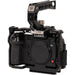 The cage is machined to allow access to all camera functions, as well as battery and media doors. An included cable clamp mounts on the side of the cage and is adjustable to fit your HDMI or USB Type-C cable. The top handle attaches via the cage's cold shoe and can be mounted either forward- or rear-facing, and it features a front cold shoe mount with spring-loaded safety catch, a rear cold shoe, single 15mm rod clamp, and multiple 1/4"-20 and 3/8"-16 threaded mounting holes.