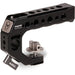 This aluminum and stainless steel handle attaches securely to your camera cage using the included spring-loaded thumbscrew. The 15mm rod port features a thumb-lever fastener to secure a rod to the handle. In addition to cages, you can mount this on a variety of camera top plates, but please note that if used with a RED KOMODO, it can only be mounted backward on the top plate.