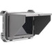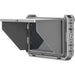 The camera mounts onto a cage, camera, or rig using the included shoe adapter mount, and a sun hood is available to protect the monitor from glare.