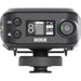 - The equally lightweight (at 6.7 oz) receiver also features easy, one-button operation for basic controls, and a detachable shoemount with a rounded base that lets you conveniently angle the unit on top of your camera.