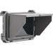 The camera mounts onto a cage, camera, or rig using the included shoe adapter mount, and a sun hood is available to protect the monitor from glare.