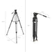 The integrated fluid head offers exceptional flexibility, allowing quick switching between the included Manfrotto-style quick release plate and DJI RS 2, RS 3, or RS 3 Pro plates via a simple selector. Its 75mm half-ball design enables smooth 360° panning and +90°/-60° tilting, while the quick release plate includes both 1/4"-20 and 3/8"-16 screws for broad camera compatibility. Additional features such as a bubble level, 1/4"-20 accessory threads, a fixed pan bar, and interchangeable rubber or spiked feet make the FreeBlazer a reliable, adaptable tripod system for studio, location, and run-and-gun productions.