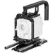 The kit includes a full camera cage, an extended D-shaped top handle, and left and right top plates for secure handling and expanded accessory mounting. A 12" ARRI-style dovetail paired with a BUD riser enables fast balancing and compatibility with studio support systems. Both 19mm studio and BUD baseplates, along with 15mm LWS and 19mm rod support, allow seamless integration with matte boxes, follow focus units, and other cine accessories. A 12" pair of 19mm titanium rods completes the setup, delivering a rigid, production-ready foundation for studio-based camera builds.