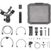 Also included with the Ronin-SC are an extended grip/tripod, camera riser, lens support, port cover, Allen wrench, quick release plate with 1/4"-20 camera mounting screw, an M4 screw, a multicamera USB control cable, a multicamera USB Type-C control cable, a USB Type-C charging cable, a USB Type-C to micro-USB adapter, and a storage case.