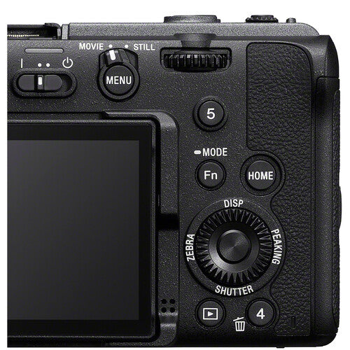 Inheriting the BIG6 home screen from high-end CineAlta cameras such as the VENICE, the FX2 allows easy adjustments to FPS, ISO, shutter angle, aperture, look, and white balance when set in Movie Mode. The 3" fold-out touchscreen LCD provides intuitive menu navigation, and sports a tiltable design and 1.03m-Dot resolution. Unique to the FX2 is a built-in 3.68m-Dot OLED electronic viewfinder with a 0.7x maximum magnification. Tilting from 0 to 90°, the EVF has a reversible, rubber eye cup and 33mm eye point, allowing pinpoint framing in extreme lighting conditions.
